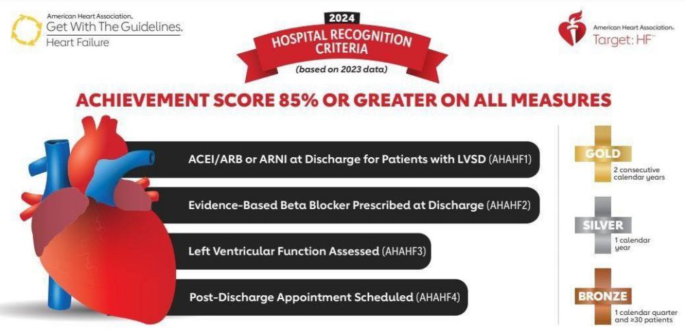 Các tiêu chí này phải đạt được đối với ít nhất 85% bệnh nhân suy tim và phải duy trì kết quả này trong ít nhất 90 ngày liên tục. Nếu kết quả này tiếp tục được duy trì đến 12 tháng thì sẽ nhận được giải SILVER PLUS và giải GOLD PLUS nếu duy trì kết quả từ 24 tháng trở lên.