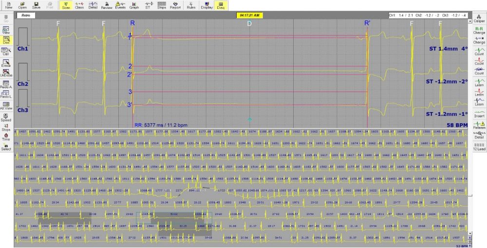 Hình 2: Hình ảnh Holter ECG với nhiều khoảng ngưng kéo dài