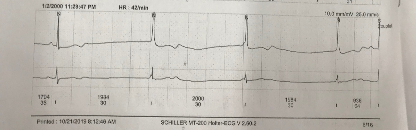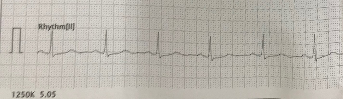 Hình 1. Điện tim lúc nhập viện cho thấy nhịp tim rất chậm